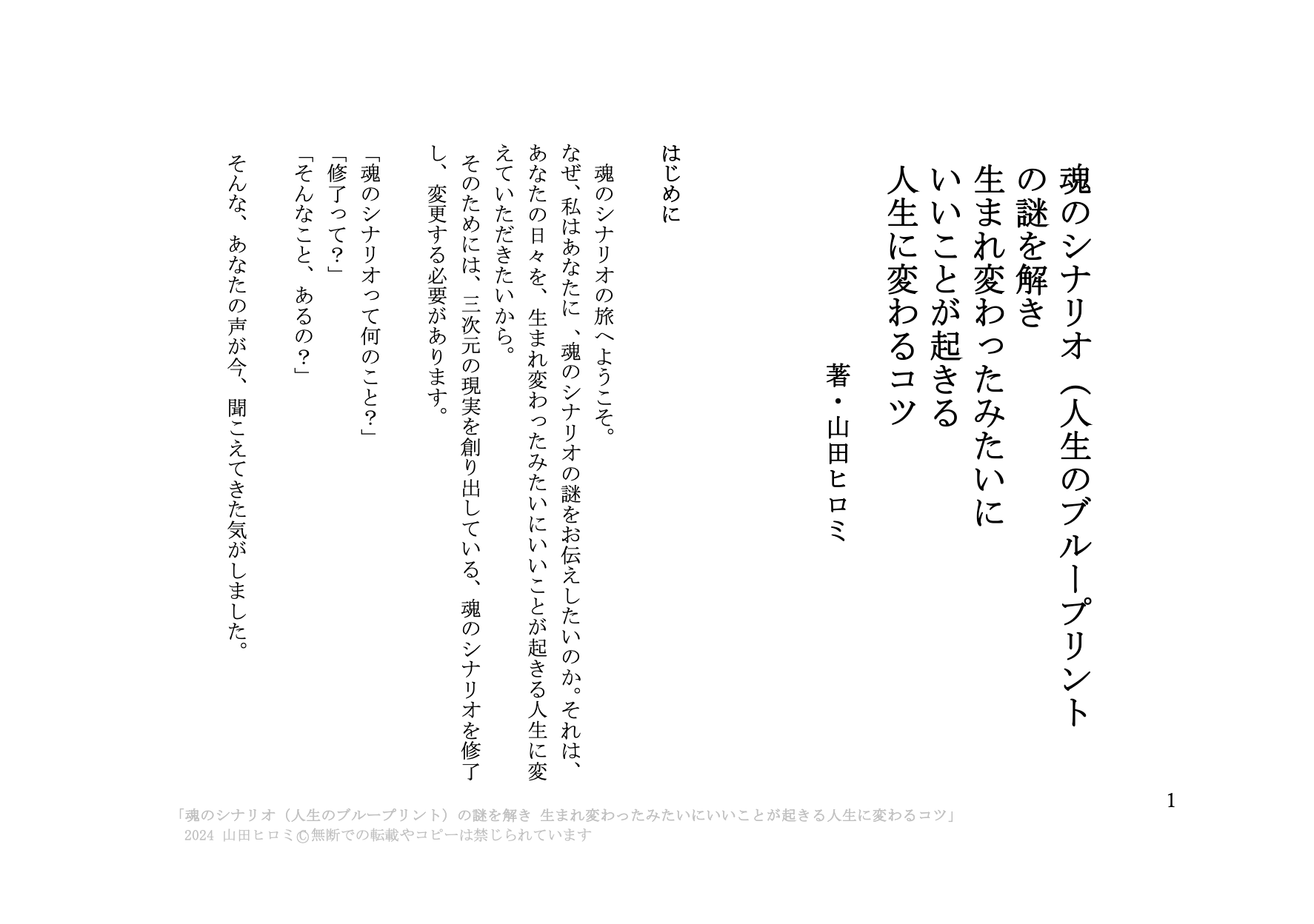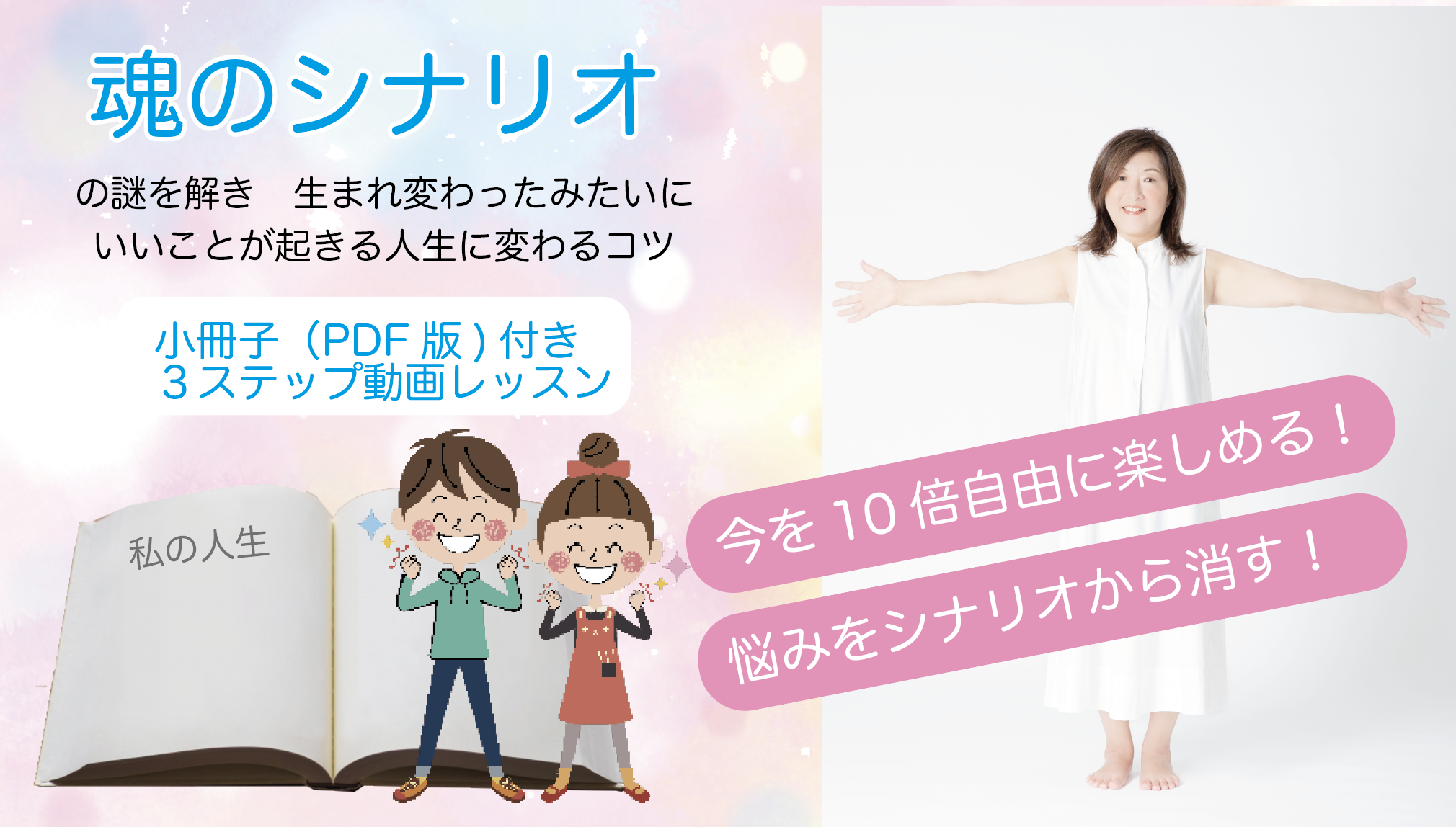 「魂のシナリオの謎を解き 生まれ変わったみたいにいいことが起きる人生に変わるコツ」の要点をギュッとまとめた、小冊子(PDF版)のURLをメールでお届けします。ダウンロードして目を通し、不思議で「んん??」と理解不能な点や、「なるほど」と納得する部分を、発見しておいてくださいね。